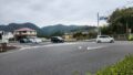 白浜海水浴場入口交差点より先の廃線跡は二車線の道路に転用。途中、宮崎交通バスの城下バス停がありますが、ちょうどこのあたりに初代 折生迫駅がありました。痕跡は残っていません。