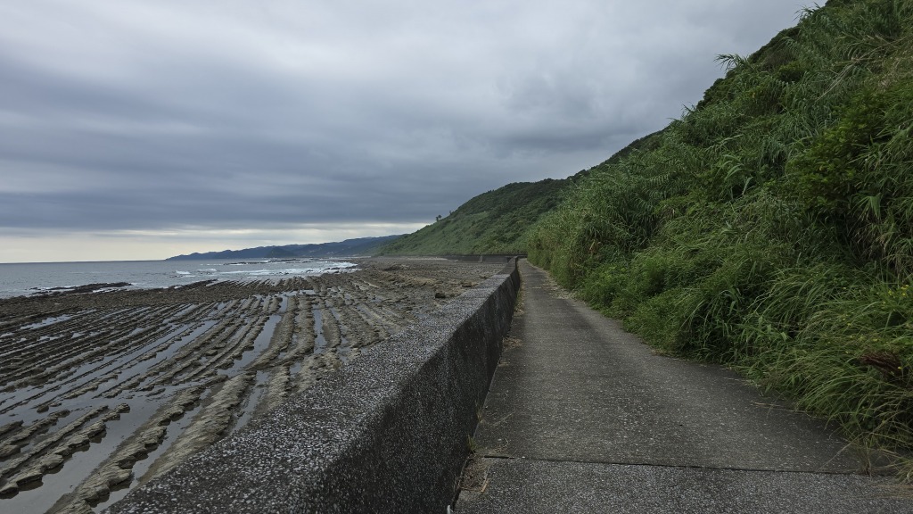 遊歩道は長く続く隆起海床と奇形波食痕沿いを進む孤独な道で、たまにジョギングの人や釣りをしに来た車とすれ違います。この狭い道を車が通ってくるのは歩行者からしてもなかなかの恐怖体験でした。